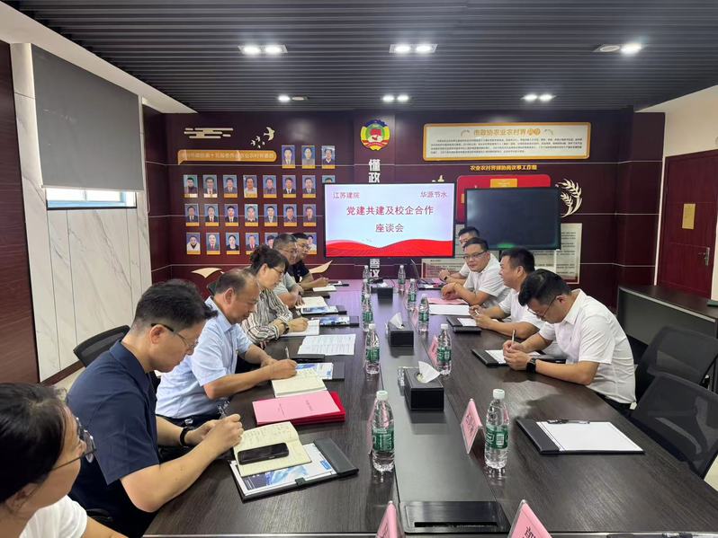 仪式开始前,江苏华源节水股份有限公司党支部书记王伟陪同我院代表一行参观了公司党群活动中心、中国智慧灌溉展览馆及生产车间,详细介绍了公司在党建工作和智慧灌溉领域的发展成果。在随后举行的洽谈会上,院长刘喜坤向企业方介绍了我院的办学特色和人才培养成果。党总支书记张侠重点阐述了学院通过加强支部建设、深化理论学习和开展社会服务,推动党建与业务深度融合的实践与成效。她指出,这一体系有效增强了基层党组织活力,显著提升了育人质量。董事长邱志鹏也介绍了华源节水作为节水灌溉领域创新型企业的发展历程和业务概况。双方还围绕生源结构、现有合作模式及未来党建共建等内容进行了深入交流。