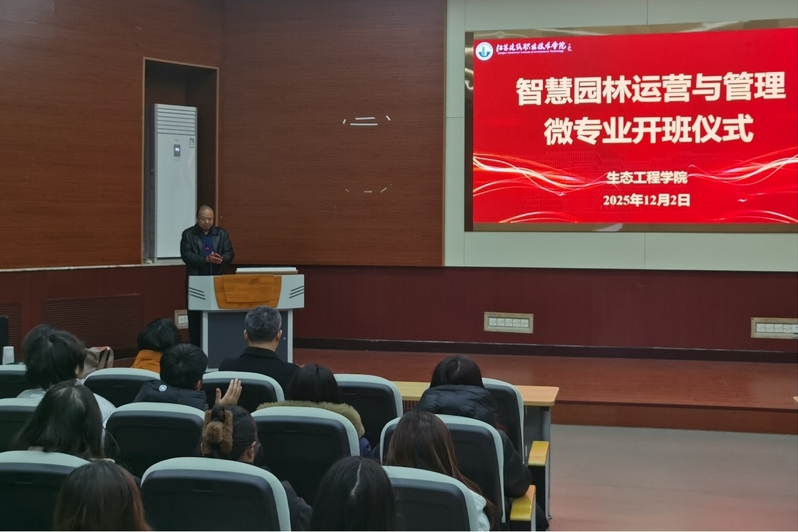 12月2日下午,生态工程学院“智慧园林运营与管理”微专业首届开班仪式在创翼讲堂举行。学院党总支书记张侠、院长刘喜坤、副书记韩旭、副院长宗义江,园林专业教师团队及首批学员共同参加仪式。活动由副院长宗义江主持。