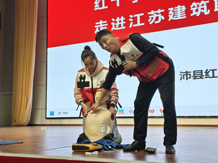 2025年11月22日,沛县红十字会走进湖西校区开展应急救护培训,我院全体2025级学生参与培训,在理论学习与实践操作中扎实掌握急救技能,强化安全防护意识。