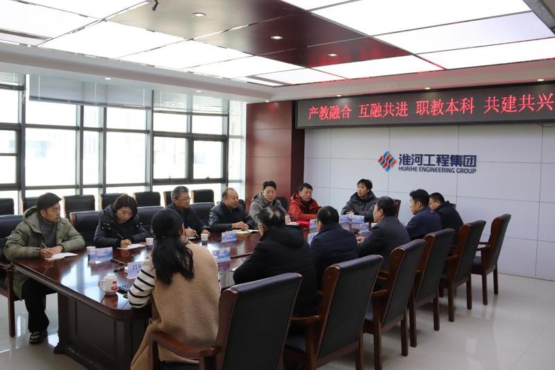 为深入贯彻落实《国家职业教育改革实施方案》和《江苏省职业教育校企合作促进条例》,持续推进产教深度融合,积极探索校企“双元”育人机制,助力水利工程专业职教本科建设,1月21日上午,生态工程学院院长刘喜坤、副院长宗义江率队一行7人赴淮河工程集团有限公司开展校企合作交流。淮河工程集团有限公司副总经理单建军等6位企业高管热情接待并参与座谈。