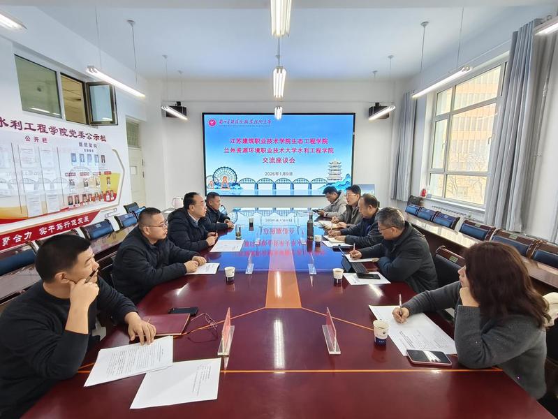 为加快推进职教本科建设步伐,推动水利工程与环境工程技术专业职教本科创建工作,促进产教融合与教学改革提质增效,2026年1月9日,生态工程学院院长刘喜坤、副院长宗义江率团一行5人赴兰州资源环境职业技术大学水利工程学院开展专题调研交流。兰州资源环境职业技术大学水利工程学院党委书记王贵忠、副院长徐洲元、智能建造与管理教研所所长张兴旺,以及环境与化工学院生态环境工程与应用技术教研所所长陈臻热情接待了调研团队。