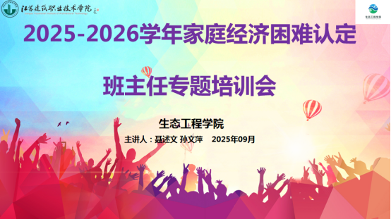 2025年9月12日,生态工程学院组织开展2025-2026学年家庭经济困难认定班主任专题培训。会议由全体班主任、辅导员及学生工作办公室教师参与,聚焦资助政策体系、班级工作清单与困难认定规范三大核心模块。
